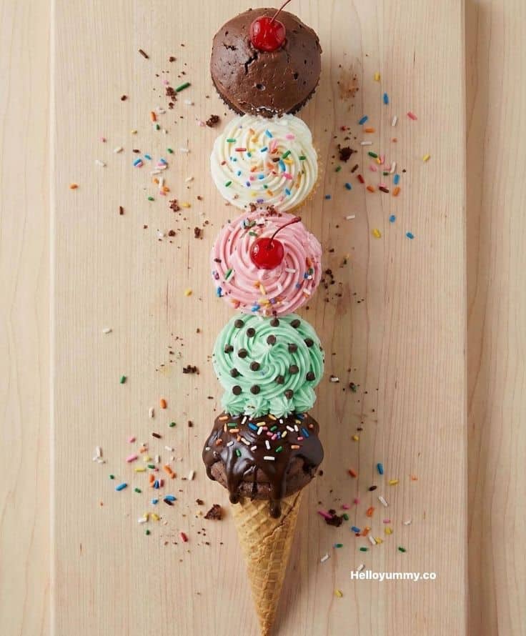 An ice cream-shaped cupcake pull-apart cake is a delightful and whimsical dessert that features cupcakes assembled to resemble a giant ice cream cone. Each cupcake is decorated with a swirl of frosting to mimic scoops of ice cream, while the base is adorned with a waffle cone pattern, creating a scrumptious treat perfect for warm-weather celebrations.